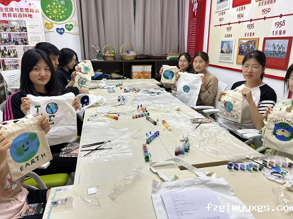 在活动中,主持人首先介绍了活动背景,讲述“地球日”建立初衷以及良好生活环境对于民生福祉、人类生存与健康、文明发展的重要意义并说明了活动规则。在场同学认真聆听,集中学习相关环保理念。随后,同学们拿上画笔在帆布包上画出美丽的地球,通过在帆布包上绘画的形式引入绿色生活概念,旨在用这些充满艺术气息的“环保包”替代传统塑料袋,从源头上减少白色污染,以实际行动践行低碳环保理念。