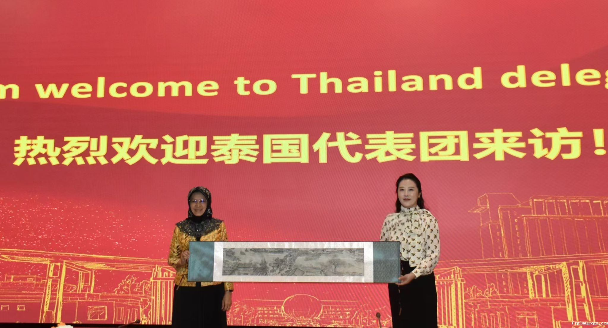 姚文韵副校长对Pechdau Tohmeena顾问一行来访表示诚挚欢迎,并介绍了我校发展历程与学科优势。她表示,在中泰建交50周年这一历史性时刻,此次交流恰逢全球教育格局深度重构的关键期,体现“一带一路”教育共同体的实践深化,彰显“全球南方”知识体系构建的创新探索。教育作为人文交流的重要纽带,将为两国关系发展注入新动力。双方可在校际合作层面,积极推进南财海外校区建设,合作共建“一带一路”数字经济学院;在机制运行层面,构建中泰高等教育质量互认体系;在文化建设层面,积极打造“海上丝路文明互鉴中心”。