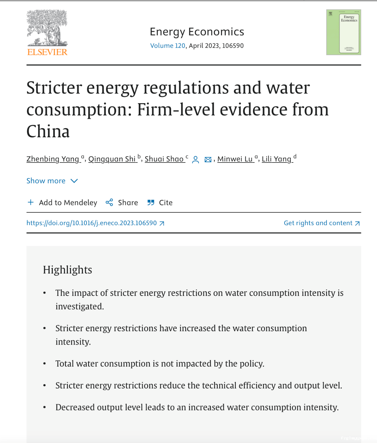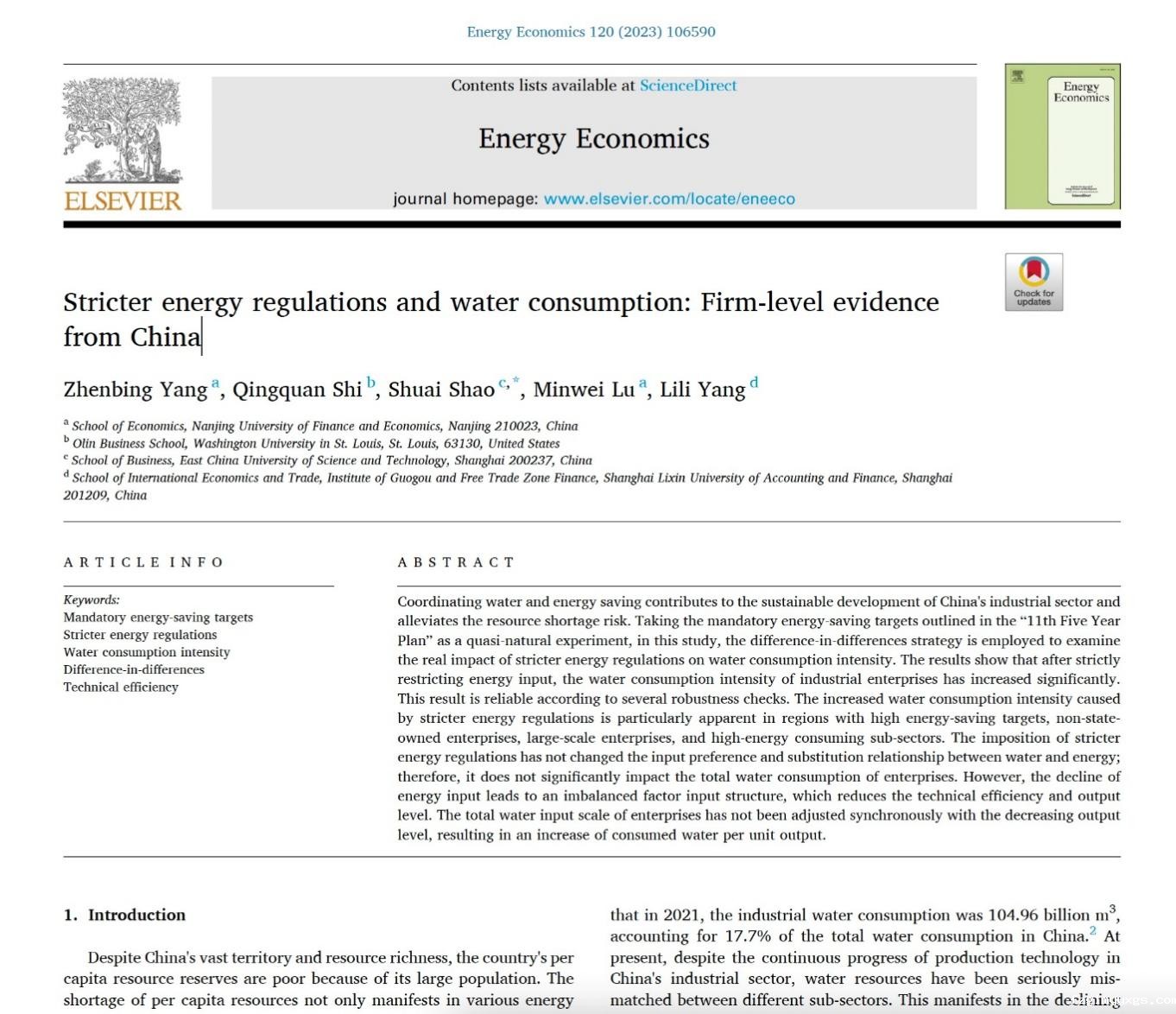 论文标题:Stricter energy regulations and water consumption: Firm-level evidence from China
